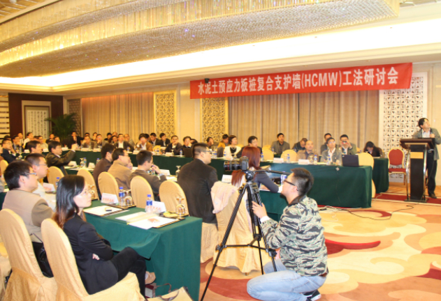 我公司进行水泥土预应力板桩复合支护墙(HCMW工法)钻研会