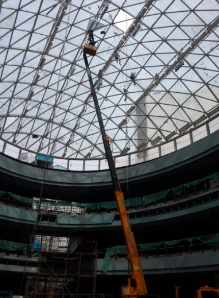 为确保武进万达广场大型LED悬挂屏的使用安全,,,,,,,,近日,,,,,,,,我公司检测中心受委托对该广场中庭椭圆采光顶钢龙骨进行了静载试验。。。。。。。该椭圆采光顶长33.6m,,,,,,,,宽25.2m,,,,,,,,离地25m,,,,,,,,属于大型网架结构,,,,,,,,这是我公司检测中心初次单独对此类大型钢龙骨网架进行现场...